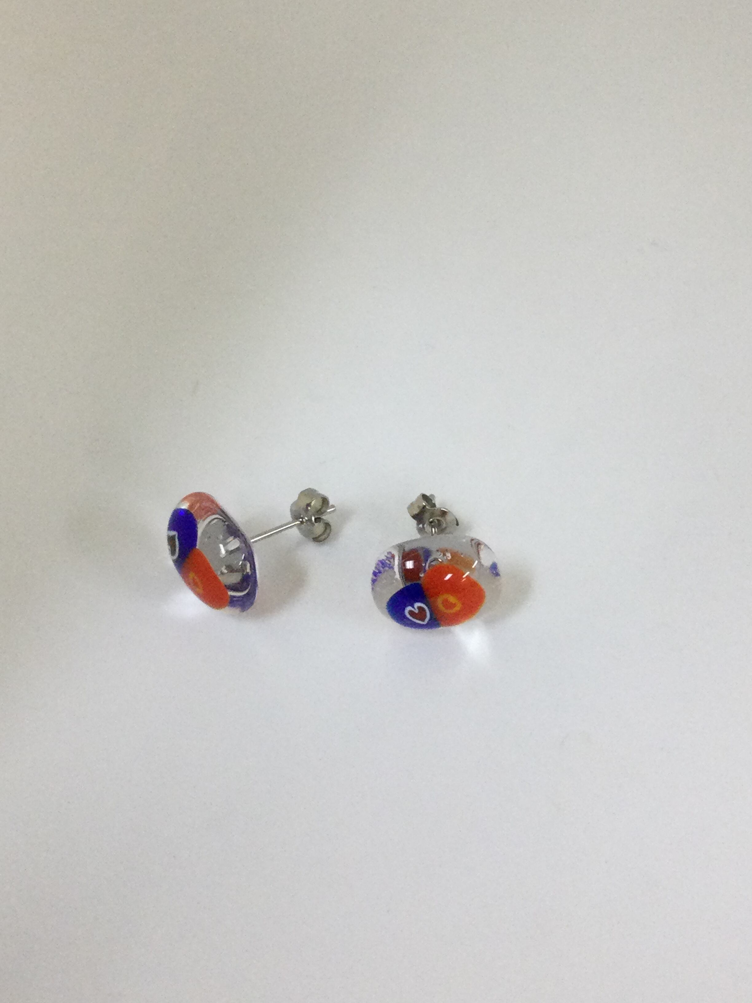 自分たちでデザインを手掛け窯で焼きあげており、ベネチアンガラスの1点もの。 ガラスデザインのため、洋装だけでなく和装のワンポイントとしても使えます。 サイズ:約13mm