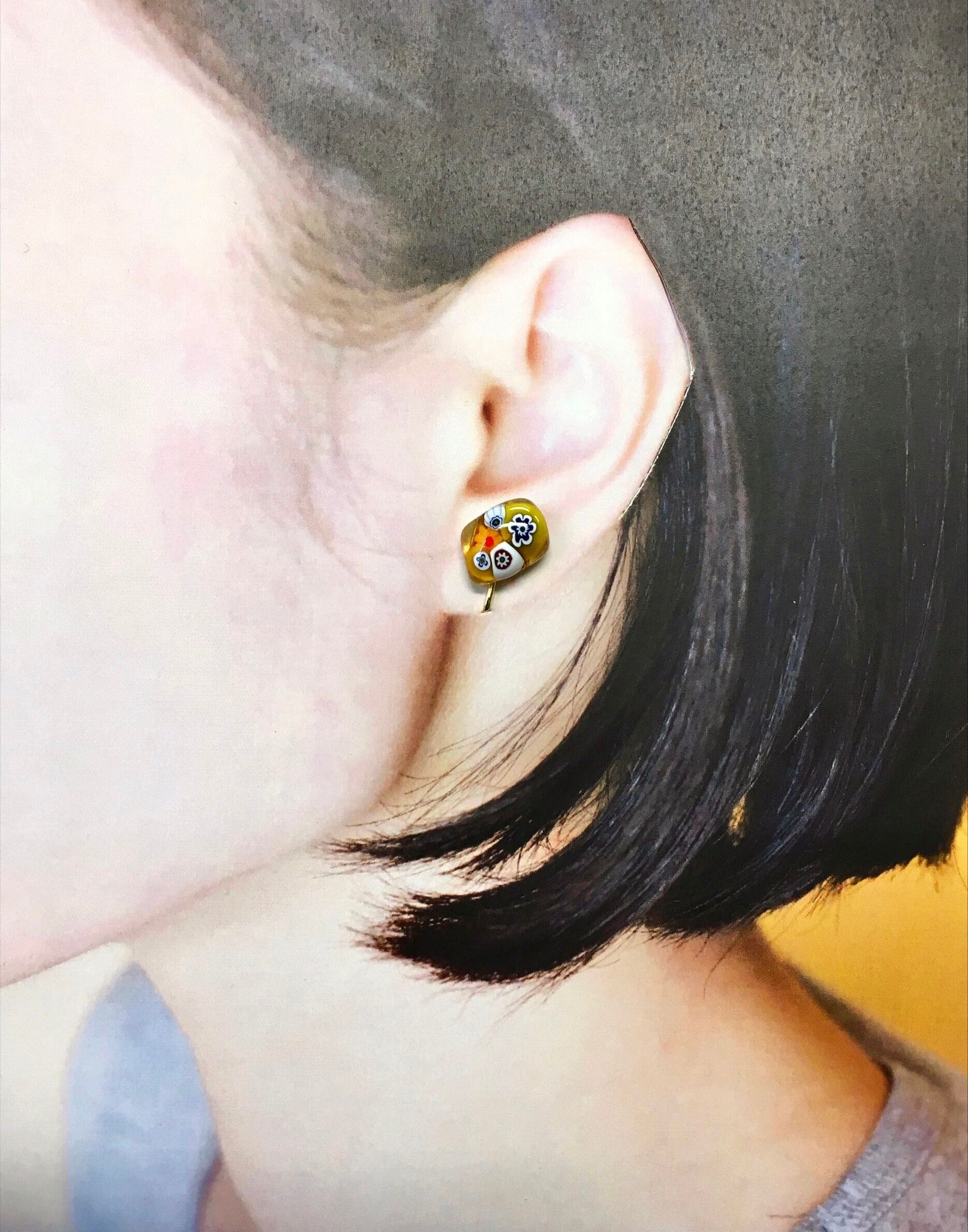 自分たちでデザインを手掛け窯で焼きあげており、ベネチアンガラスの1点もの。 ガラスデザインのため、洋装だけでなく和装のワンポイントとしても使えます。 サイズ:約13mm
