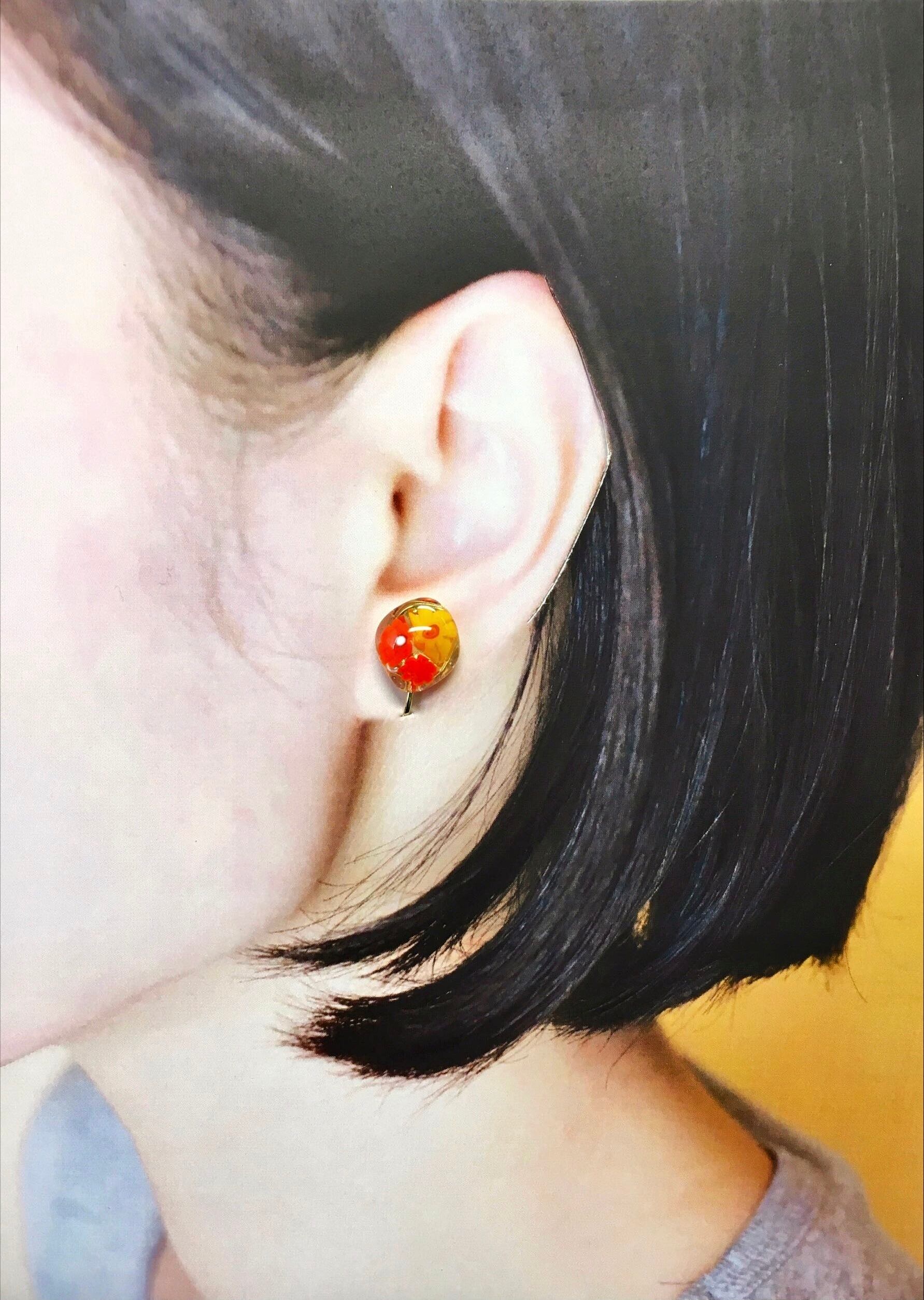 自分たちでデザインを手掛け窯で焼きあげており、ベネチアンガラスの1点もの。 ガラスデザインのため、洋装だけでなく和装のワンポイントとしても使えます。 サイズ:約14mm